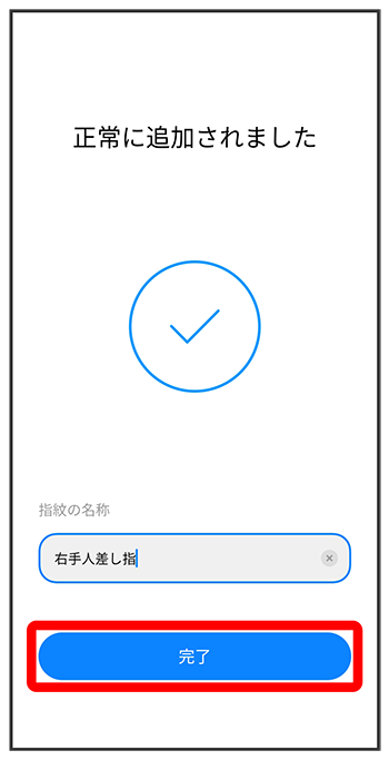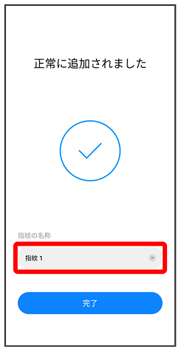 指紋の登録が完了し、指紋設定画面が表示されます。