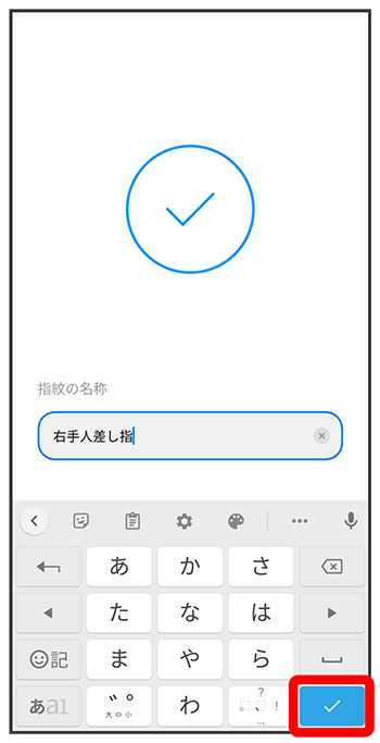 指紋設定画面で登録した指紋をタップ指紋認識センサー利用時のご注意