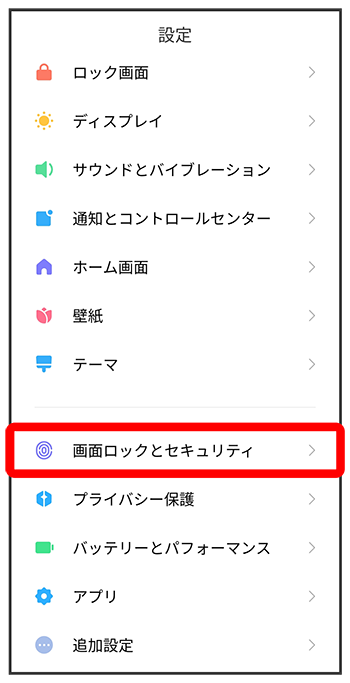 - すでに画面ロック解除方法を設定しているときは、ロックを解除する操作が必要です。