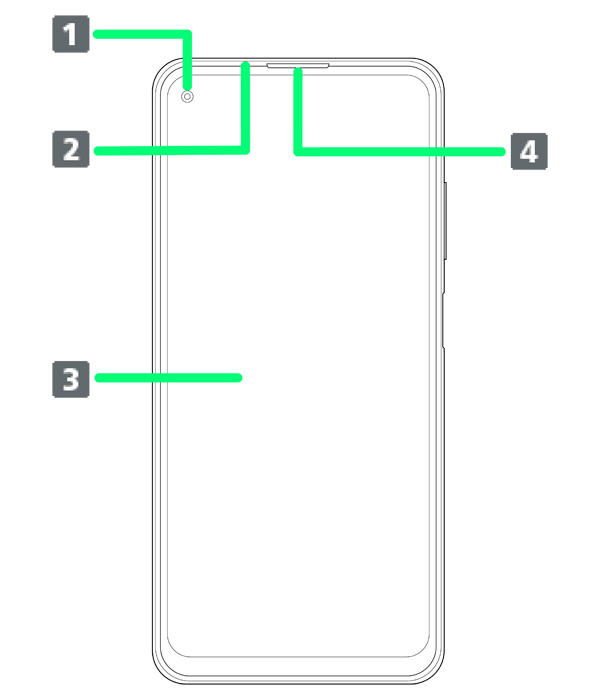 | 受話口/スピーカー | 相手の声、音楽や動画などの音声が聞こえます。 |