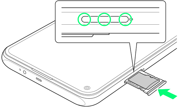 - SDカードがSIMカード/SDカードトレイから浮かないように、確実にはめ込んでください。