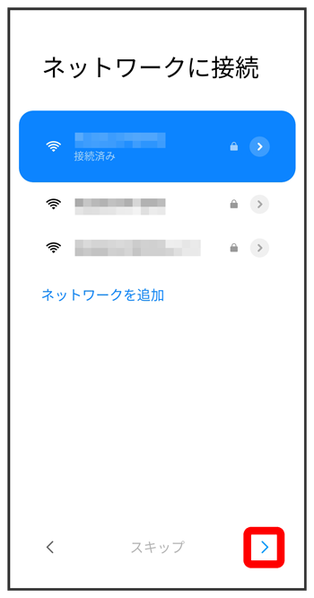- Wi-Fiネットワークに接続しないときは、をタップします。以降は、画面の指示に従って操作してください。