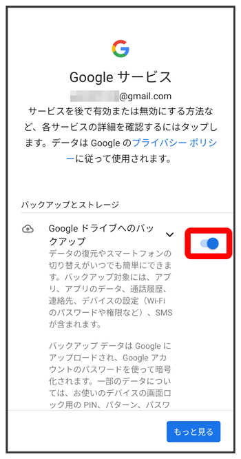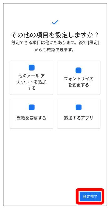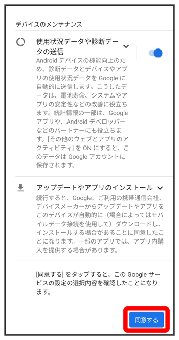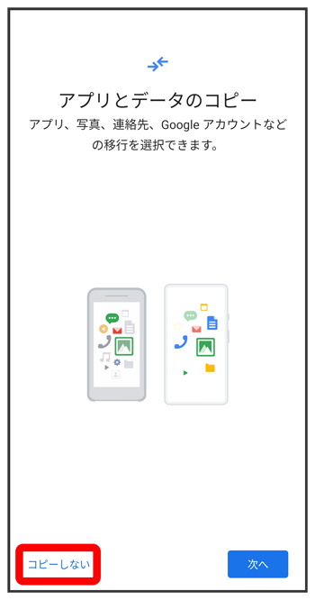 - をタップすると、Google アカウントを設定しているほかの端末からデータをコピーできます。画面の指示に従って操作してください。