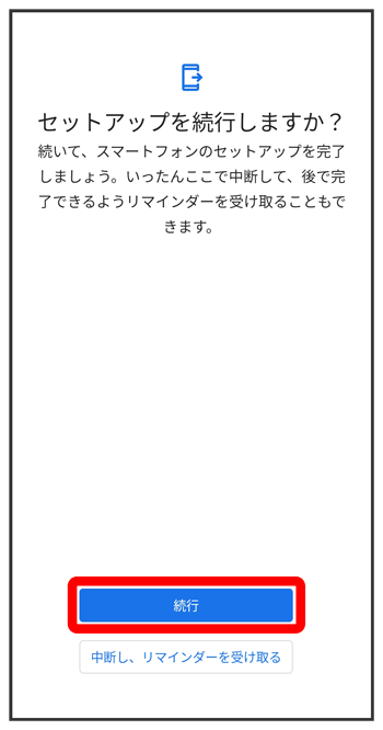 - 初期設定を中断し、あとでリマインダーを受け取るときは、をタップします。