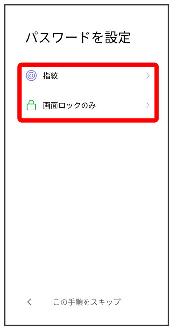 - 指紋や画面ロックを設定しないときは、をタップします。