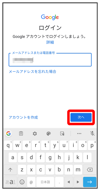 ユーザー名(メールアドレスまたは電話番号)を入力