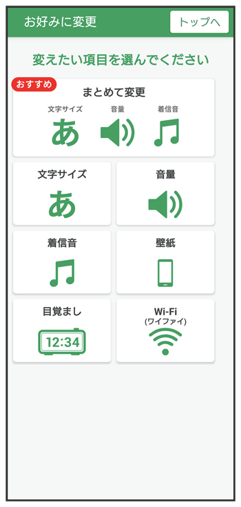 「お好みに変更」からスマホの基本的な設定をかんたんに変更することができます。