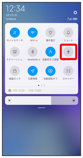 - 機内モードを設定しているときに、同様の操作を再度行うと機内モードが解除されます。