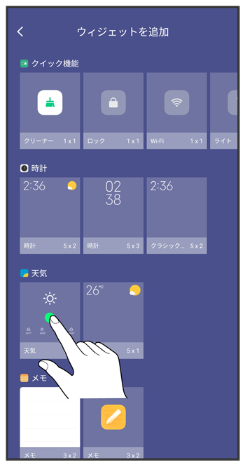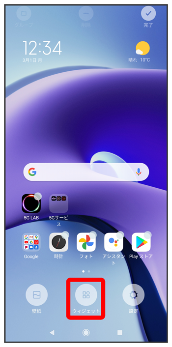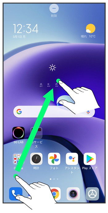 ホーム画面で対象のアイテムをロングタッチ移動したい場所にドラッグウィジェットやアイコンを削除する