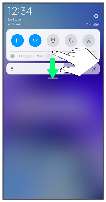 - ステータスバーを2本指で下にスワイプ/フリックしても、クイック設定パネルを表示できます。