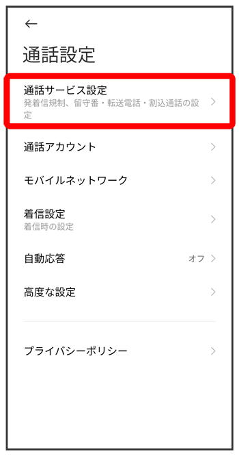 通話サービス設定画面が表示されます。
