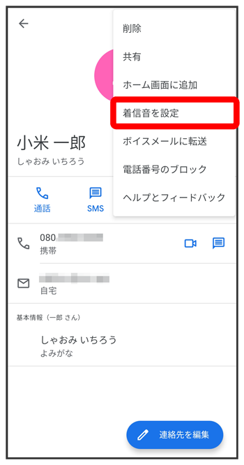 連絡先ごとに着信音を設定する