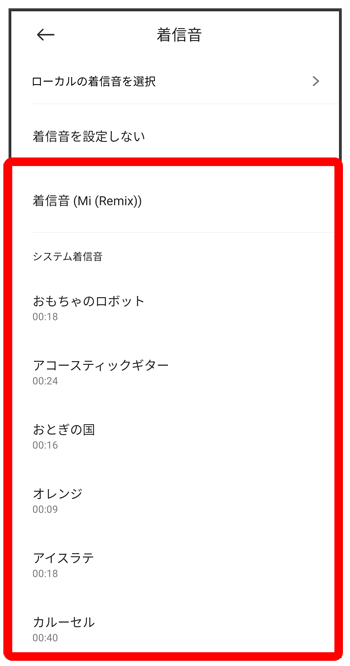 設定したい着信音を選択