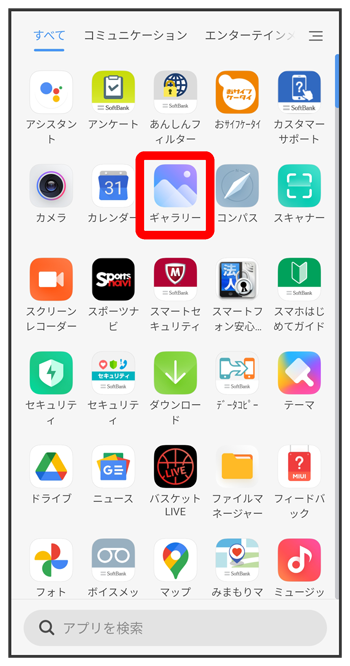 ホーム画面を上にスワイプ/フリック