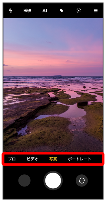 - 撮影モードを左右にスワイプ/フリック/ドラッグしても、撮影モードを切り替られます。