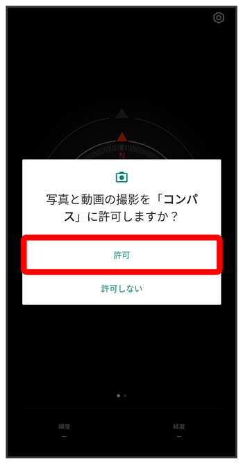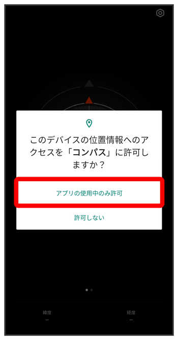(コンパス)をはじめて起動したときの操作を例に説明します。