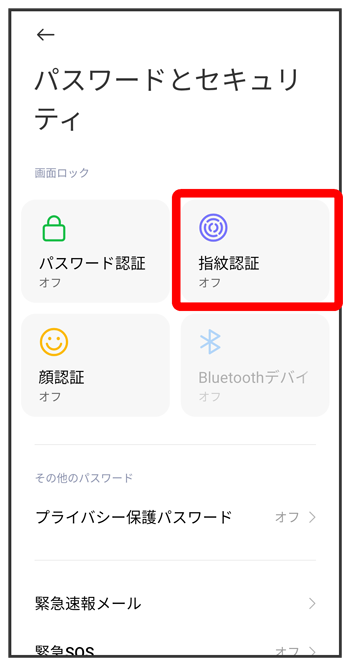 - 指紋認証ができないときの予備の画面ロック解除方法になります。