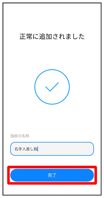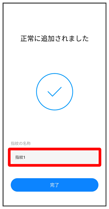 指紋の登録が完了し、指紋設定画面が表示されます。
