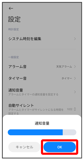 アラームの音量の変更が完了します。