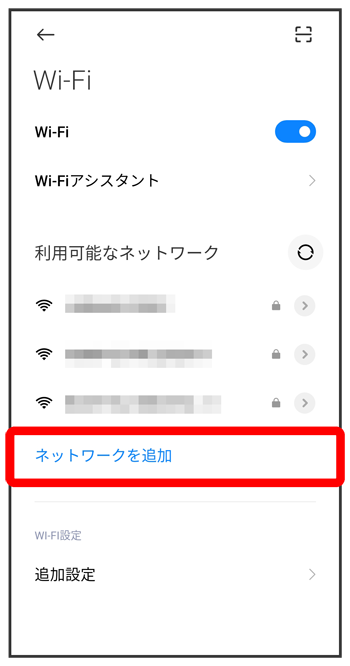 Wi-Fi設定画面が表示されます。