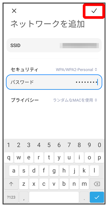 - セキュリティで保護されていないWi-Fiネットワークのときは、パスワードを入力する必要はありません。
