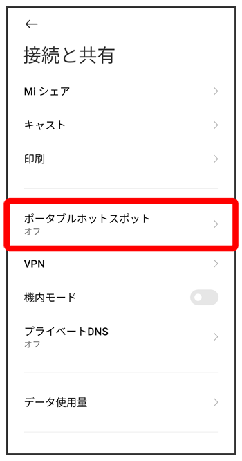 ポータブルホットスポット画面が表示されます。