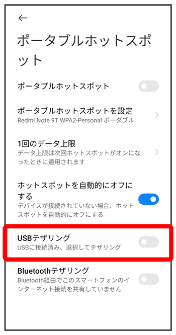 USBテザリング機能を利用する