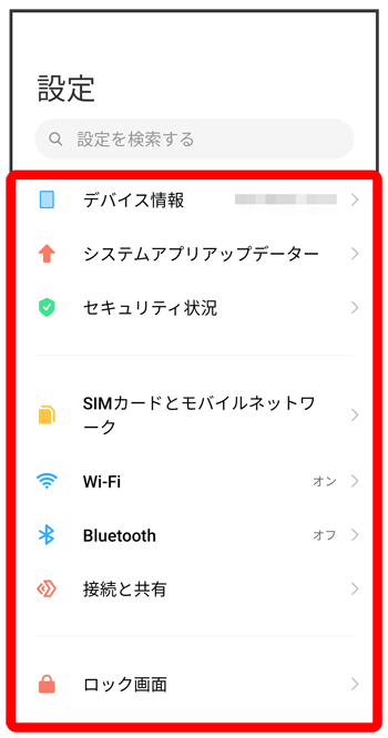 | デバイス情報 | デバイス名や電話番号などを確認することができます。 |