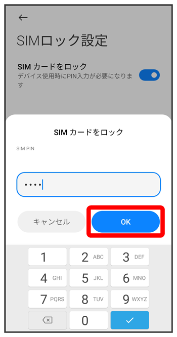 PINコードを有効にすることで、SIMカードを本機に取り付けた状態で電源を入れたとき、PINコードを入力する画面を表示するように設定できます。