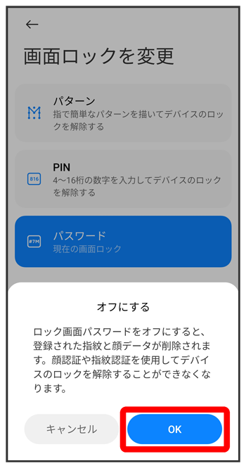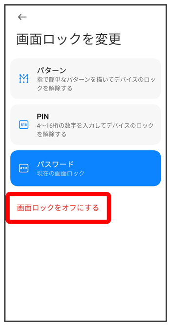 すでに画面ロック解除方法を設定しているときに操作できます。