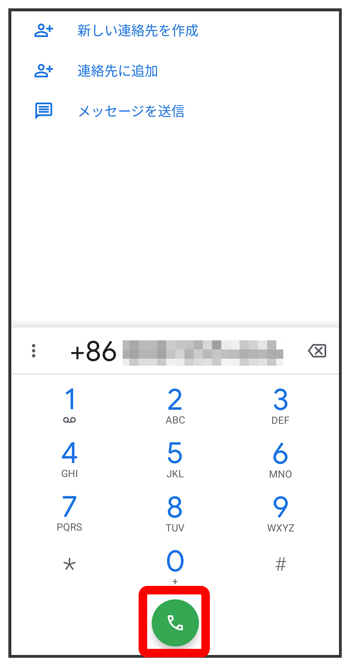 国番号のあとに相手の電話番号(先頭の「0」を除く)を入力