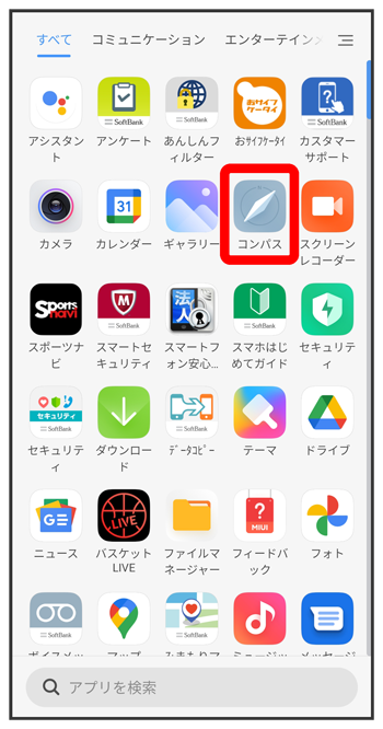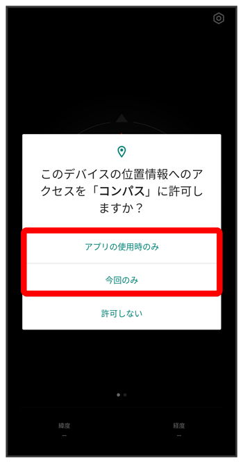 (コンパス)をはじめて起動したときの操作を例に説明します。