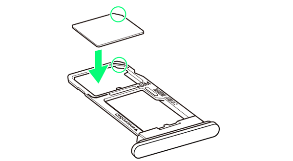 - SIMカードの向き(切り欠き部分/IC(金属)部分を下)に注意して、ゆっくりと取り付けます。