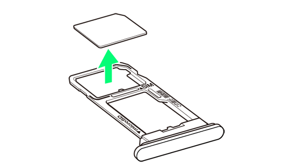 - ディスプレイを上にして、カードトレイを引き出してください。ディスプレイを下にしたり、本機を立てた状態でカードトレイを引き出すと、SIMカードやSDカードがカードトレイから外れ、紛失する可能性があります。