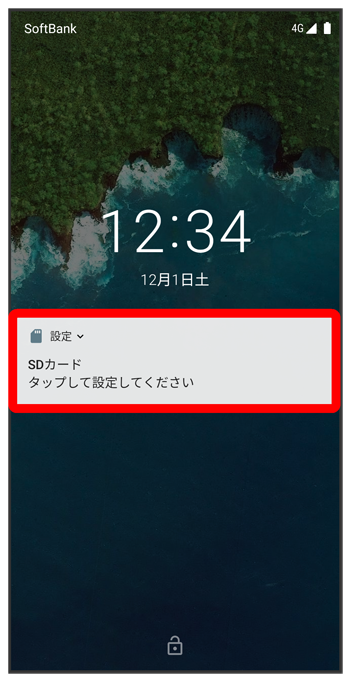 - 画面ロックを解除しているときは、ステータスバーを下にドラッグして通知パネルを開き、をタップしてもセットアップすることができます。