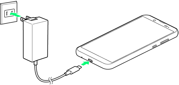 本機の外部接続端子に、ACアダプタのUSB Type-Cプラグを差し込む