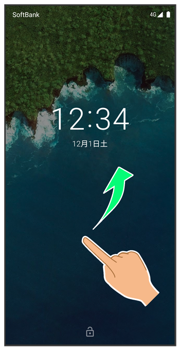 ロック画面を上にフリック