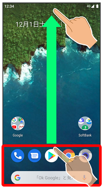 ホーム画面でお気に入りトレイを画面上部までドラッグ
