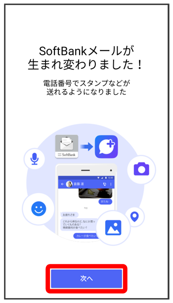 (SoftBankメール)のバックアップデータがSDカード/本体/SoftBankサーバ内にあるときは、復元の画面が表示されます。画面の指示に従って操作してください。