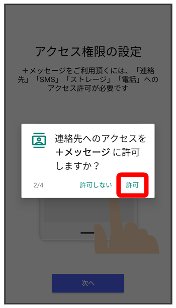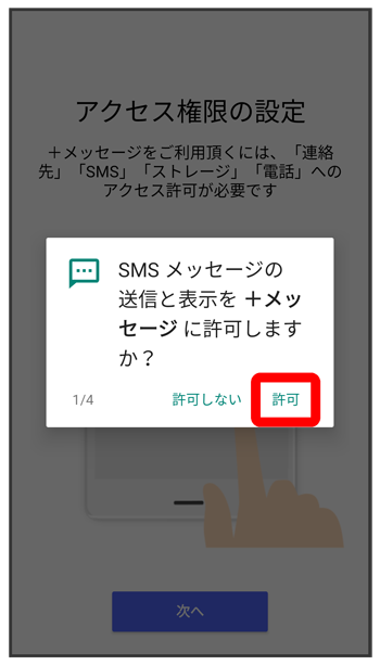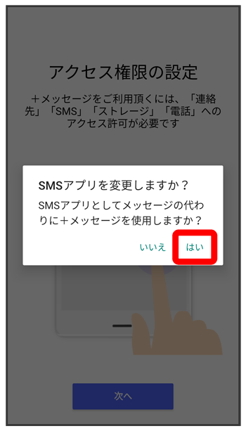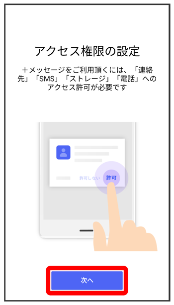 - をタップした場合は、SMS/S!メールのみの利用となり、+メッセージは利用できません。