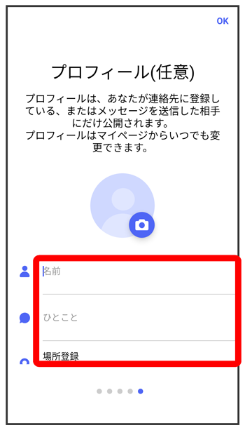 - 設定せずにをタップして、あとで設定することもできます。詳しくは「プロフィールを編集する」を参照してください。