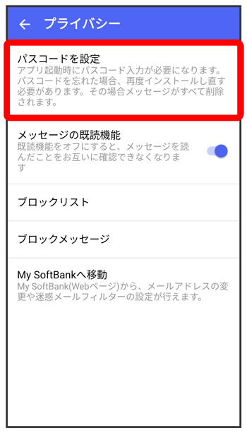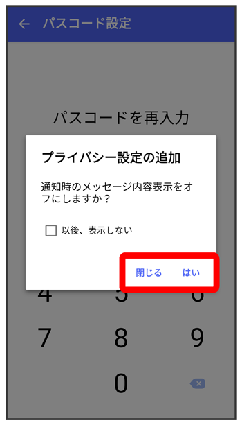 (+メッセージ)を開く際にパスコードの入力が必要になります。