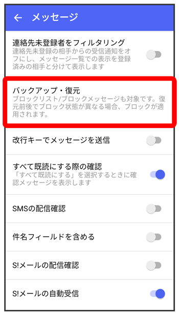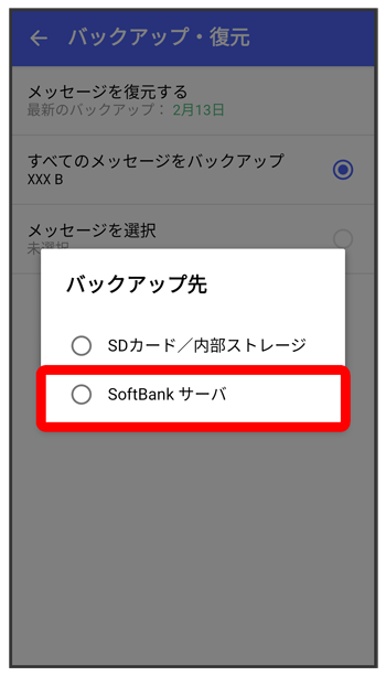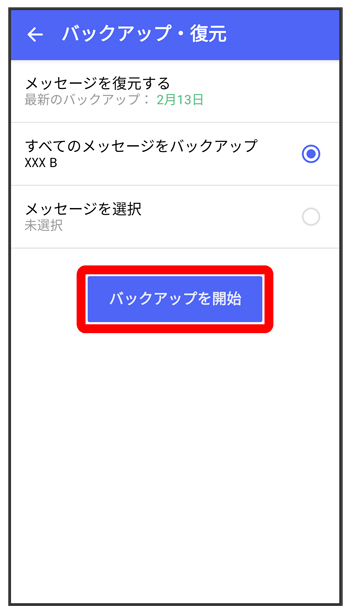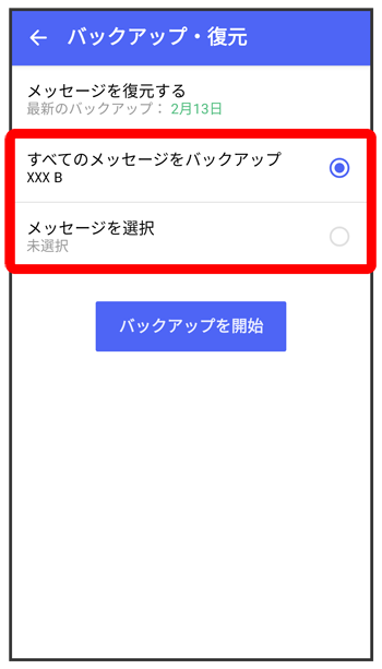 - をタップしたときは、バックアップしたいメッセージを選択と操作してください。