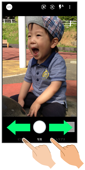 画面下部の撮影モードを左右にドラッグして/を選択