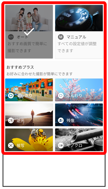 | オート | おすすめの画質で簡単に撮れます。 |