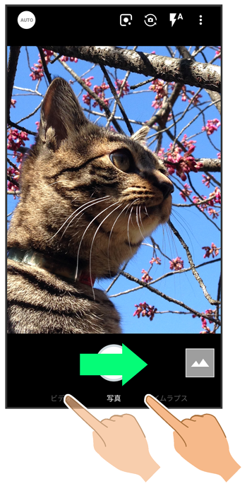 - 撮影モードがのときは、ドラッグする必要はありません。