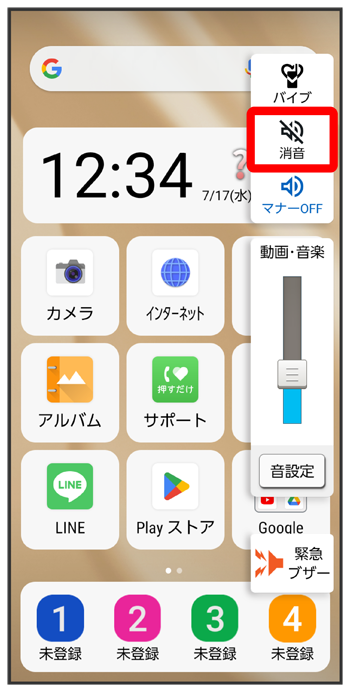 ホーム画面を左にフリックマナーモード(消音)を解除する