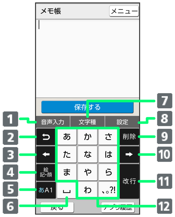 - 絵文字/記号/顔文字を入力(ロングタッチすると、入力拡張プラグインを表示)