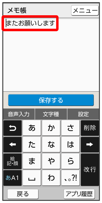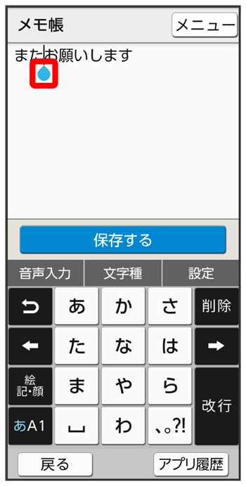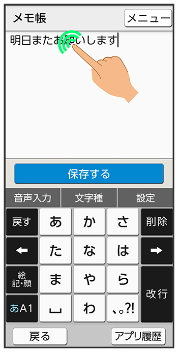 文字入力画面の入力済みの文字をロングタッチ