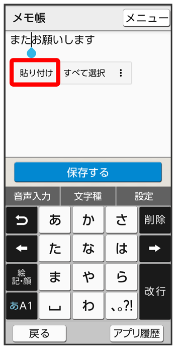 貼り付ける位置をタップ